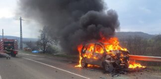 Accident rutier urmat de incendiu în comuna Vulturești: un autoturism a...