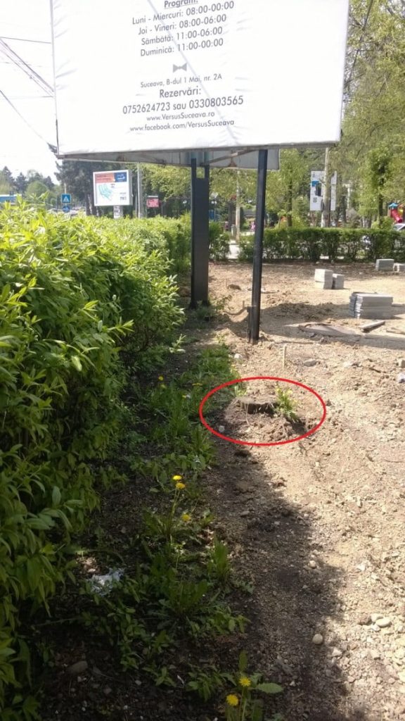 Iniţiatorul Asociaţiei Suceava Noastră, Dan Ioan Cuşnir, a anunţat, marţi seara, în emisiunea Ora de politică de la televiziunea regională Intermedia TV că va depune miercuri solicitări la Prefectura Suceava, la Primăria Suceava şi la Garda de Mediu pentru a afla dacă a existat aprobare şi cine a acordat-o pentru ca pentru o terasă de peste drum de Primărie să se taie doi copaci şi spaţiul verde să fie înlocuit cu pavele.