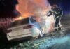 Mașina care a luat foc la Zamostea după ce a lovit...