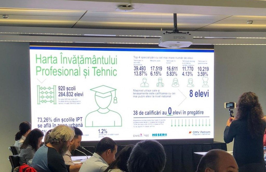 Harta pune faţă în faţă, pentru prima dată în România, calificările elevilor şi companiile cu obiect de activitate legat de aceste calificări.