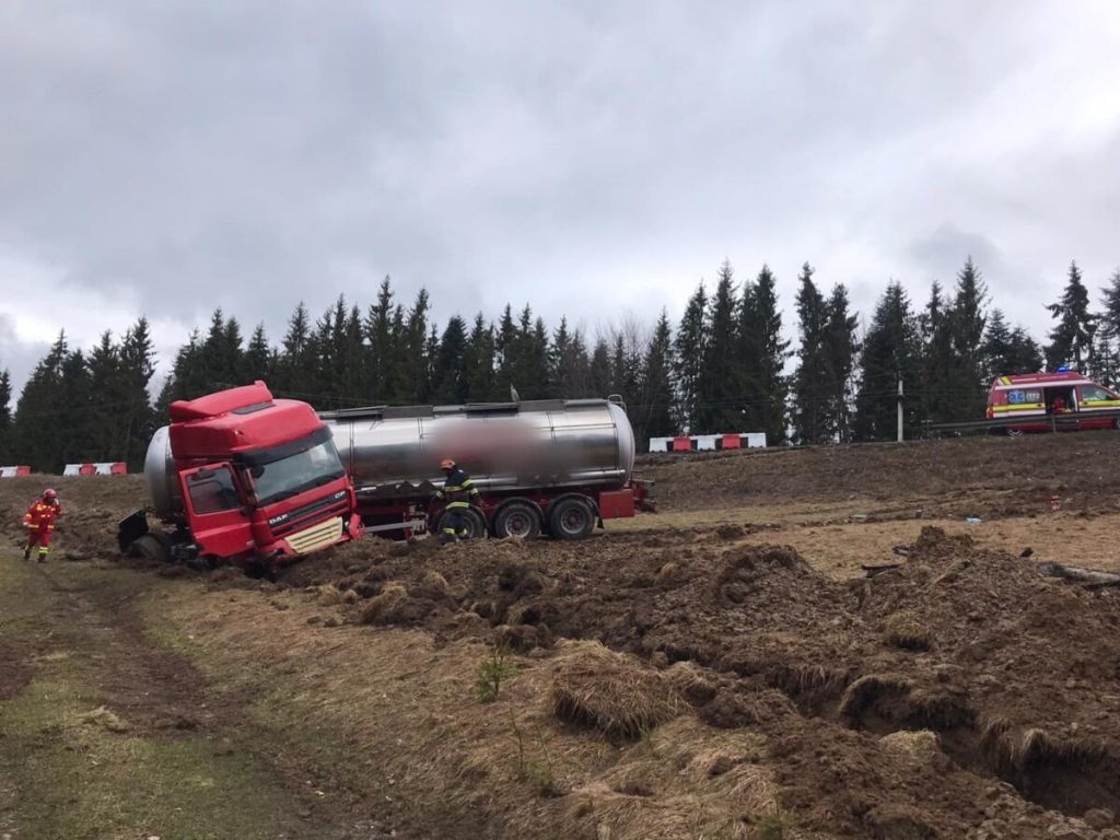 O cisternă goală, folosită la transportul combustibilului, a ieșit, sâmbătă seara, în afara părții carosabile pe raza localității Poiana Stampei, anunță sergent major Radu Gabriel din cadrul ISU Suceava.