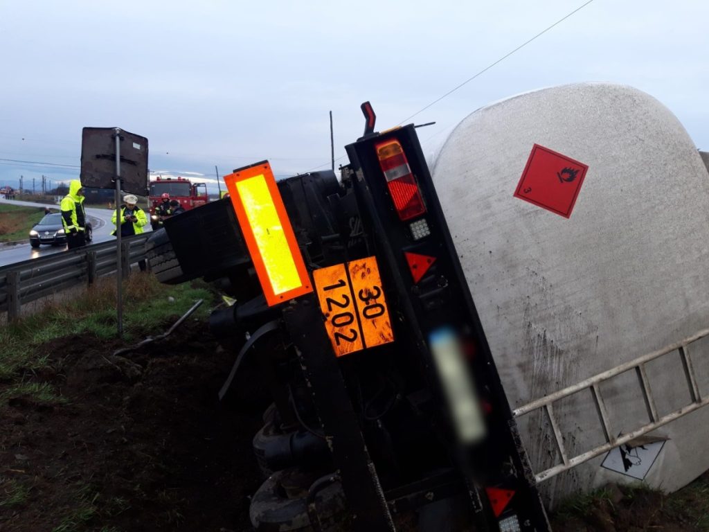 Potrivit purtătorului de cuvânt al ISU Suceava, maior Alin Găleată, o autocisternă încărcată cu 26 de tone de motorină, s-a răsturnat în afara părții carosabile, pe raza localității Roșiori, iar șoferul nu necesită îngrijiri medicale.