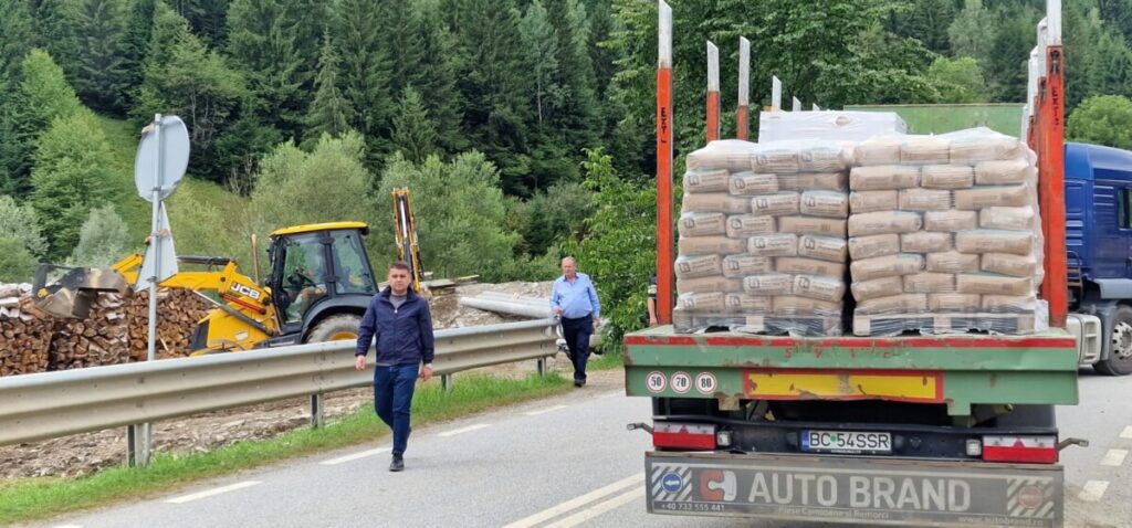 Un convoi format din cinci tiruri și mai multe camioane încărcate cu materiale de construcții și electrocasnice a sosit, joi după amiaza, la Broșteni, trimis din partea autorităților și comunității din județul Bacău.