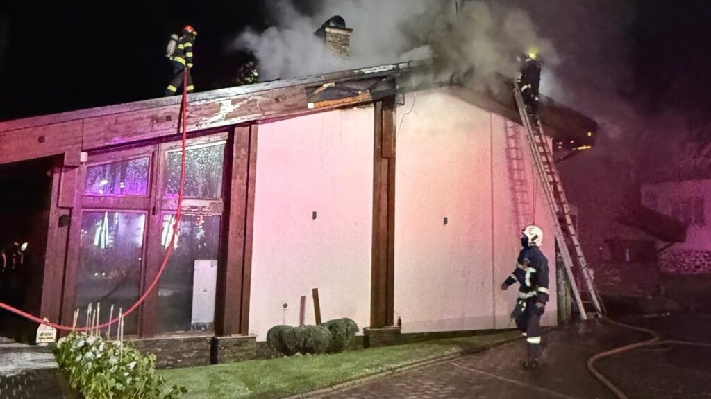 Un incendiu violent a izbucnit vineri dimineață, în jurul orei 2:16, la acoperișul unui restaurant din localitatea Mestecăniș din comuna Iacobeni.