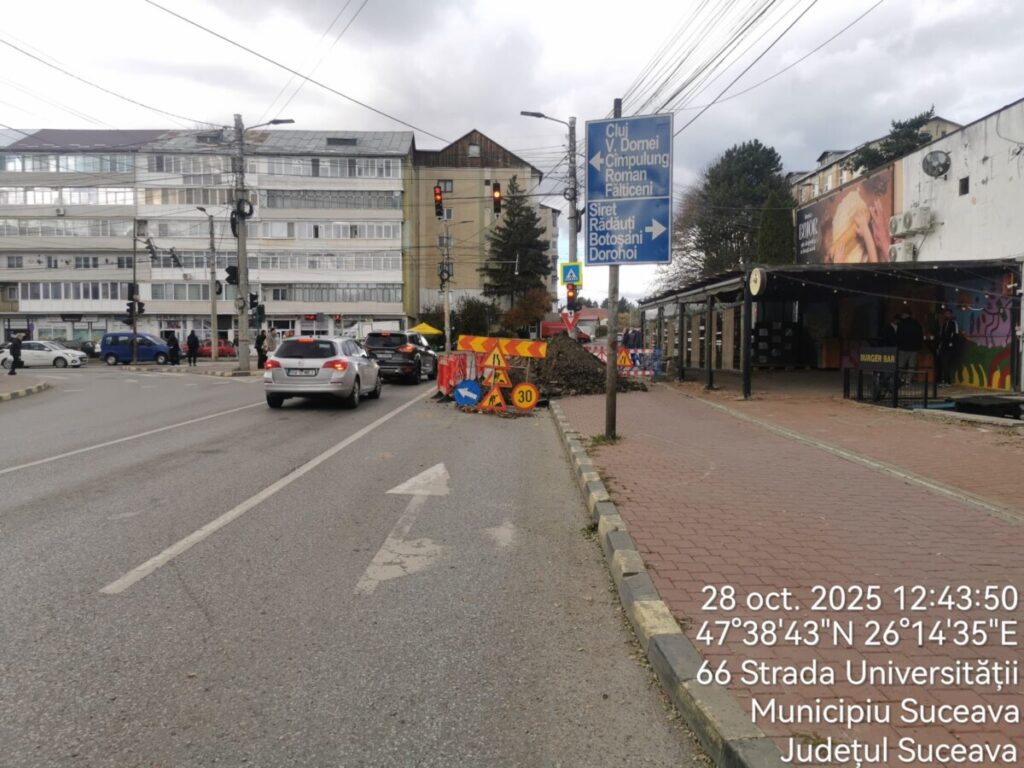 Primăria Municipiului Suceava a anunțat că societatea Delgaz Grid S.A., prin executantul S.C. Instgaz S.R.L., a efectuat lucrări de săpătură pe strada Universității fără avizul de spargere/săpătură eliberat de autoritatea locală.