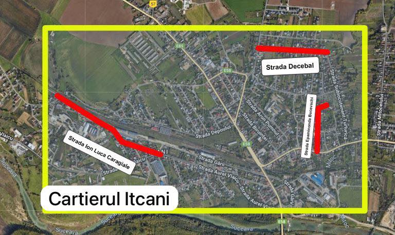- Ițcani: străzile Epaminonda Bucevschi, Decebal și Ion Luca Caragiale;