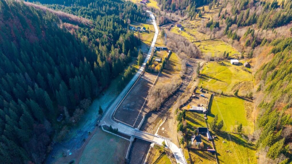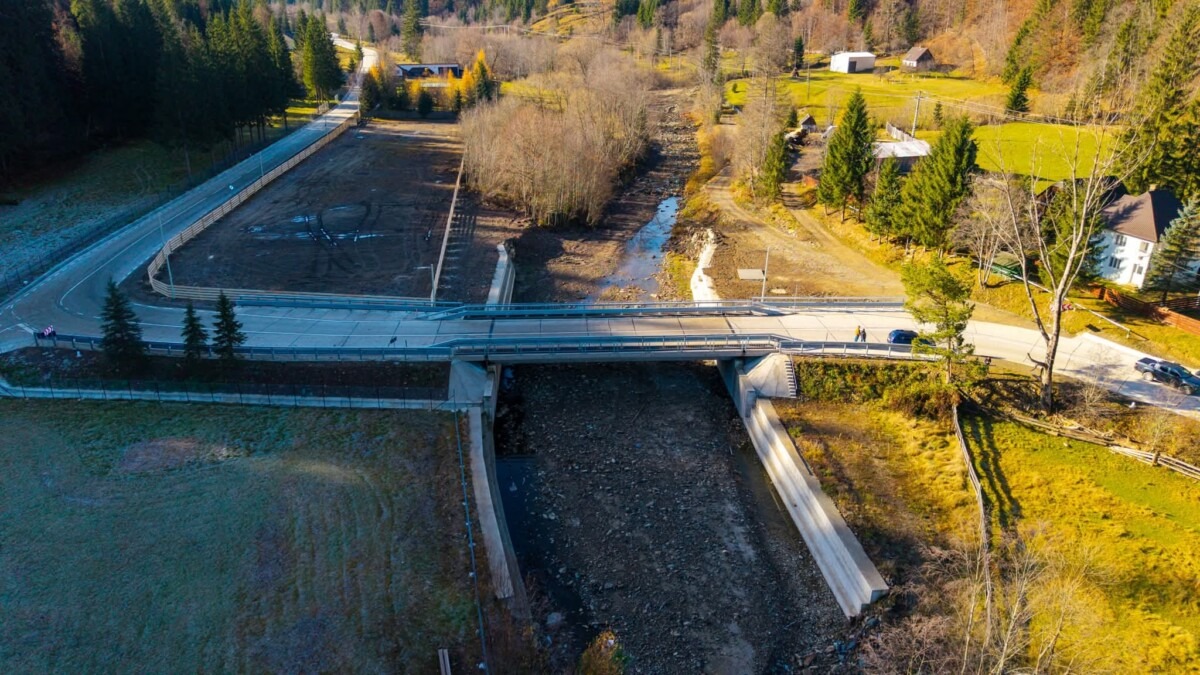 Lucrările au inclus șanțuri betonate, podețe noi, zone consolidate cu gabioane și construirea a trei poduri noi peste pâraiele Negru și Brodina, unul de 18 metri și două de aproximativ 30 de metri.