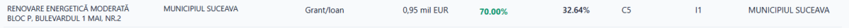 Astfel, la componenta Valul Renovării, privind renovarea și creșterea eficienței energetice a unor clădiri, blocuri sau instituții publice, sunt 31 de proiecte cu o valoare de 59,28 milioane de euro.