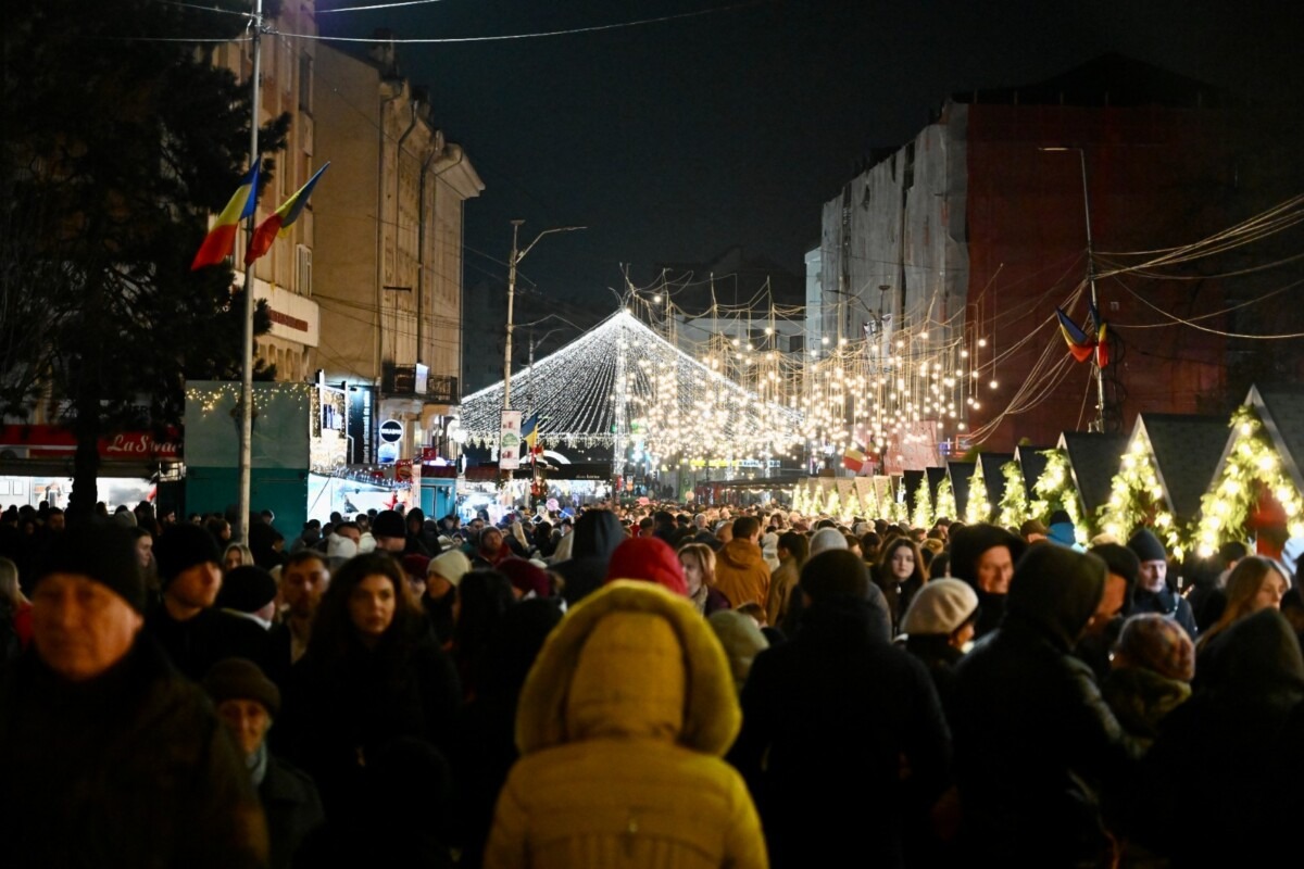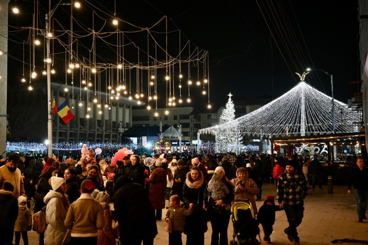 Seara, Primăria Municipiului Suceava a aprins luminile Târgului de Crăciun, marcând deschiderea oficială a sezonului sărbătorilor de iarnă în inima orașului.