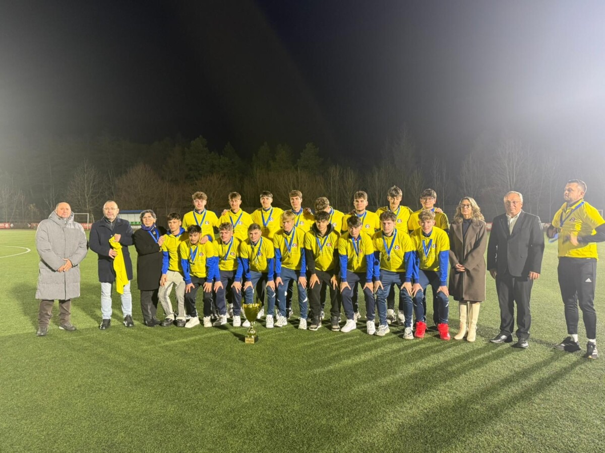 Jucătorii pregătiți de profesorul Andrei Ițco au primit tricourile și medaliile de campioni într-un cadru festiv pe terenul de fotbal cu nocturnă al unității școlare sucevene.