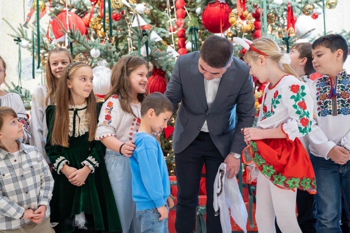Președintele Șoldan a împărțit cadouri micilor colindători, adolescenților, tinerilor și adulților prezenți, primind la rândul său un cadou special: o ie pentru băiețelul său, David Matei. „Când va mai crește, îi voi arăta fotografiile cu toți cei care ne-au colindat și ne vor colinda în aceste zile la Palatul Administrativ. Și abia aștept să-l văd și pe el, într-o zi, printre colindători. Atunci, cu siguranță, voi fi cel mai emoționat, așa cum este orice părinte când își vede copilul colindând pentru prima dată”, a concluzionat Gheorghe Șoldan.