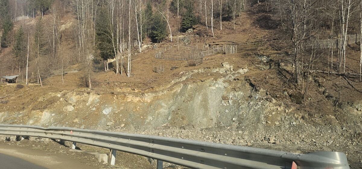 - Versantul instabil, cu pământ care se surpă peste drum și case, fără consolidări reale.