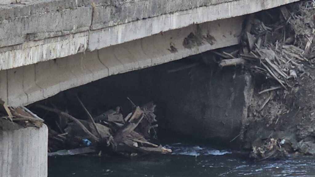 - Podul principal rămâne colmatat cu aluviuni, cu o deschidere de trecere redusă la aproximativ 1 metru, riscând refularea apei în gospodării la prima ploaie sau topire a zăpezii.