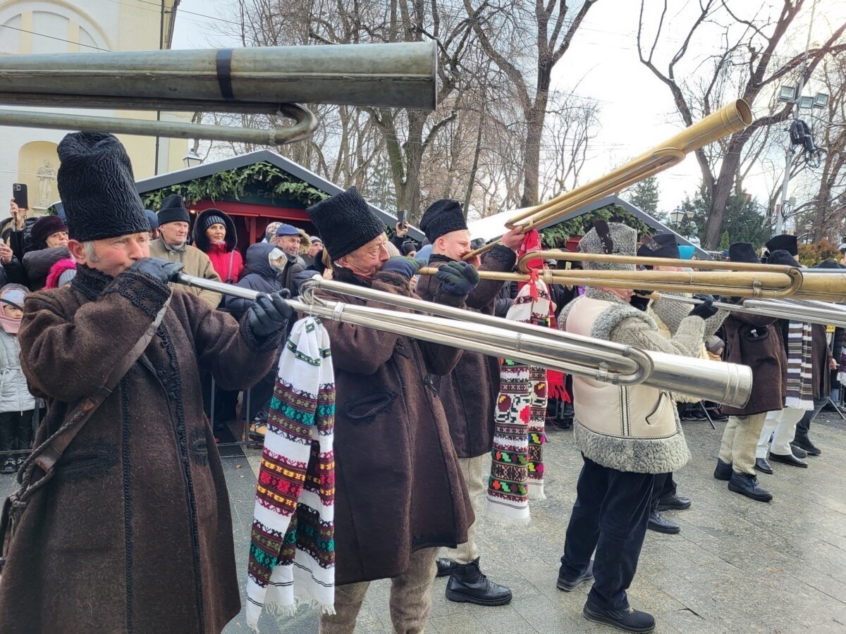 După paradă, spectacolul a continuat pe scena din fața Casei de Cultură a Sindicatelor, în cadrul Târgului de Crăciun.