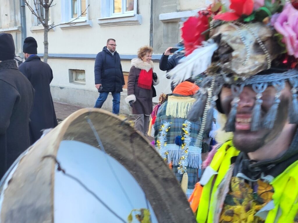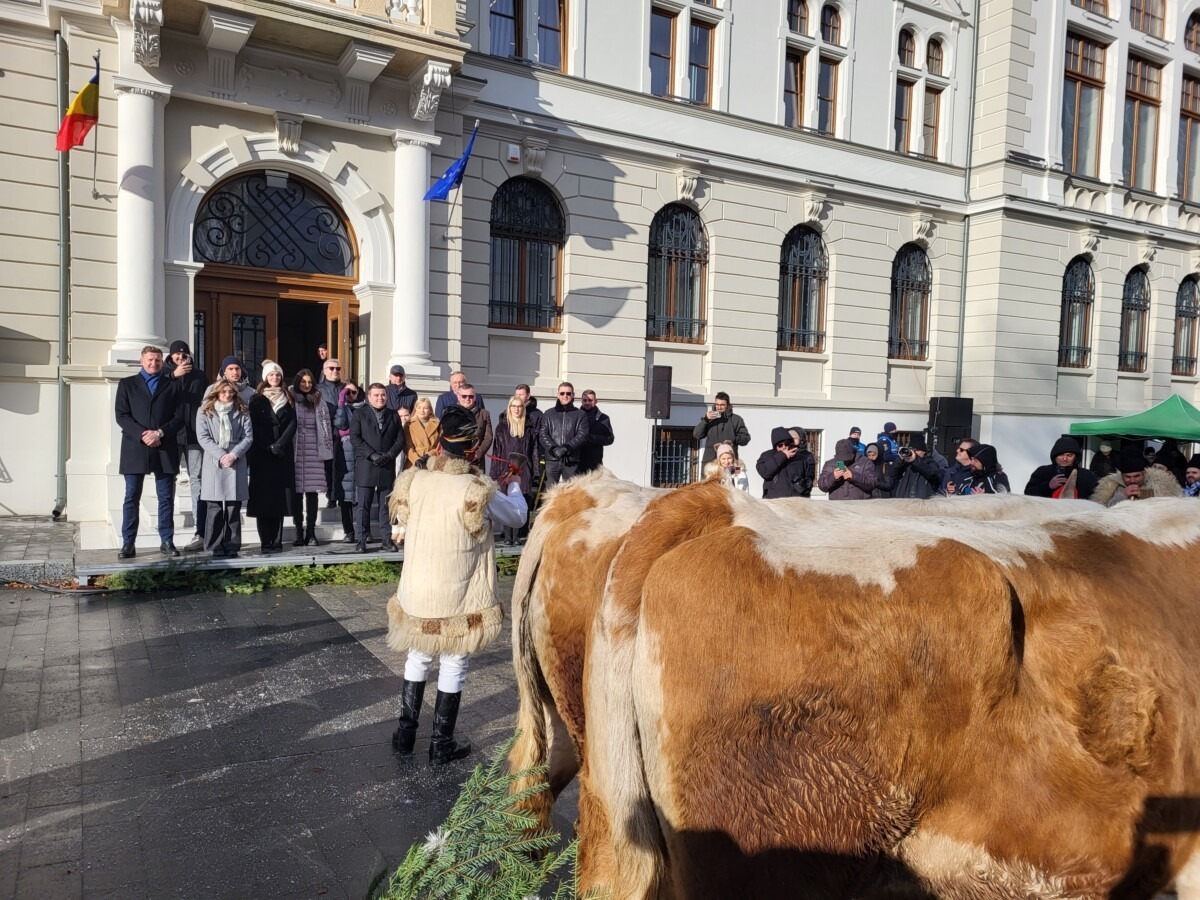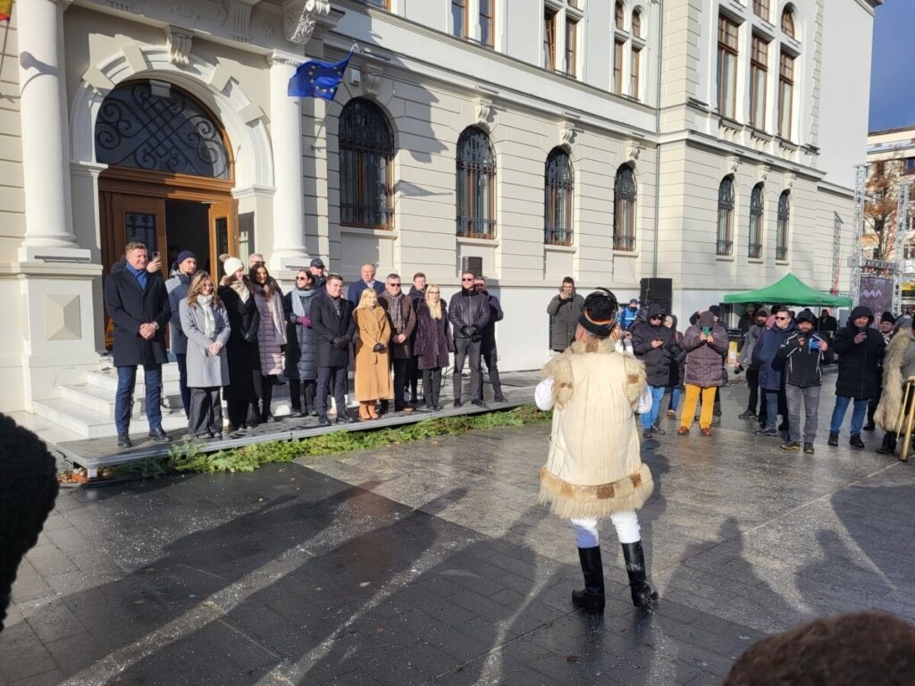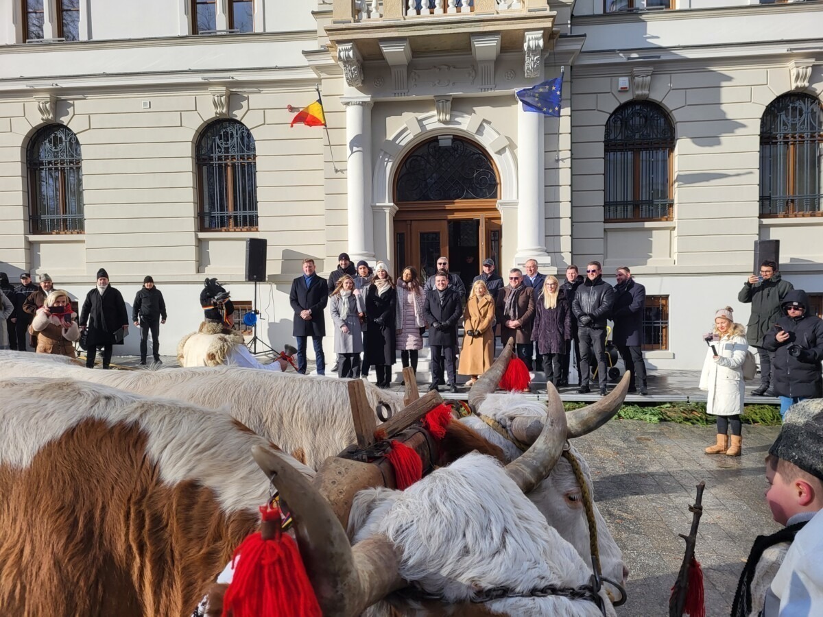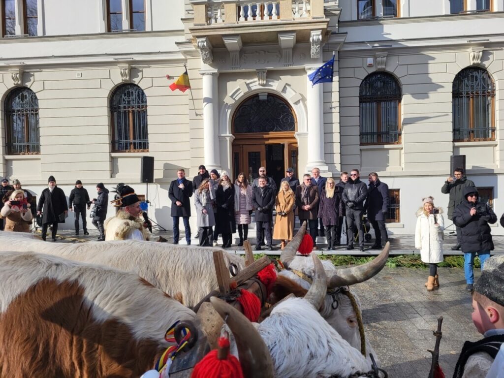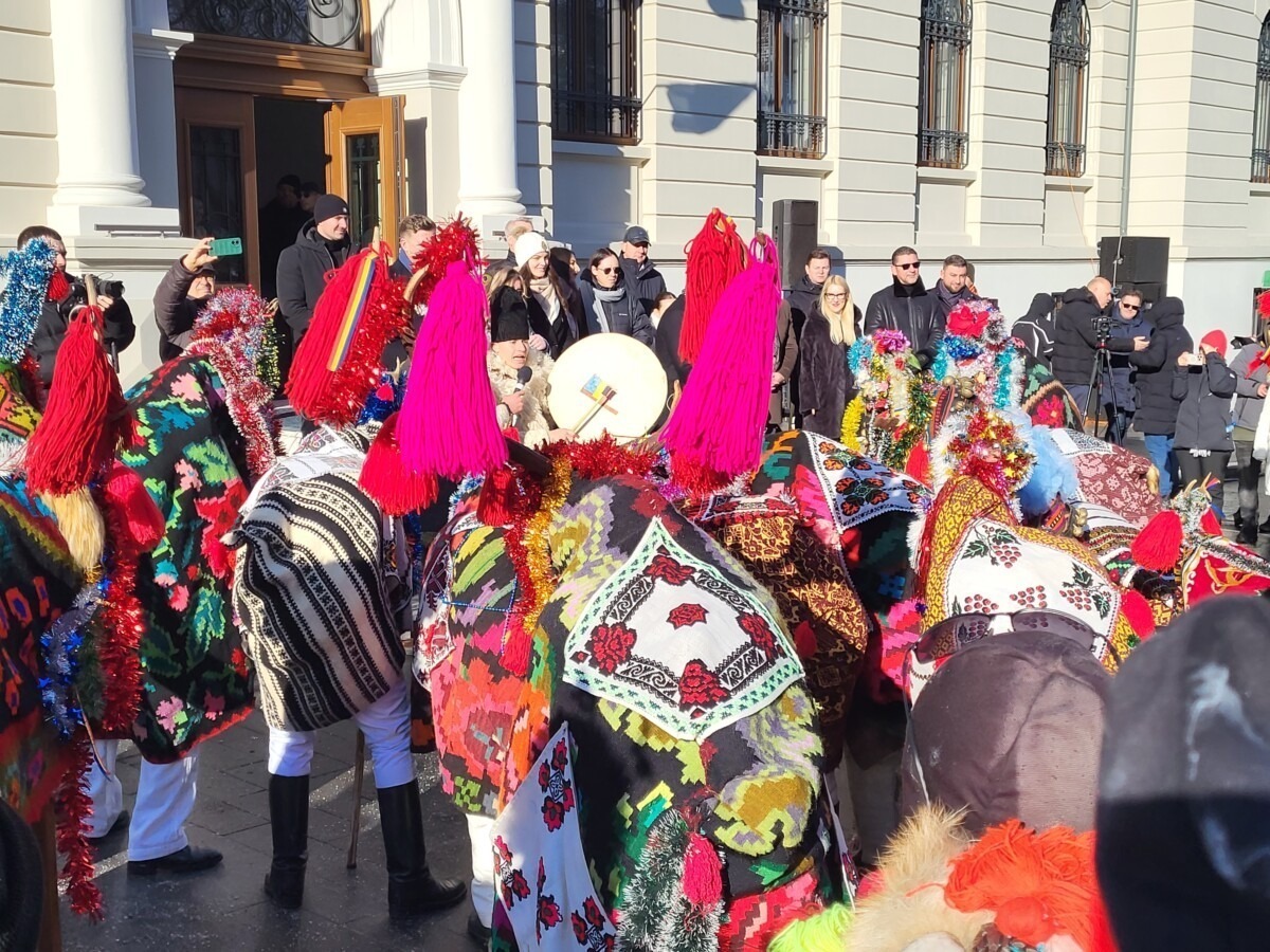 Parada măștilor și costumelor tradiționale a debutat pe artera principală a municipiului, fiind deschisă de un grup de urători din Stulpicani, cu buciumași și un plug tras de boi. Cetele de urători și mascați au oprit în fața Palatului Administrativ, unde au fost întâmpinați de președintele Consiliului Județean Suceava, Gheorghe Șoldan, prefectul Traian Andronachi, viceprimarul Dan Ioan Cușnir, vicepreședintele CJ Nicolae Robu și alți reprezentanți ai administrației, care au oferit colaci urătorilor.