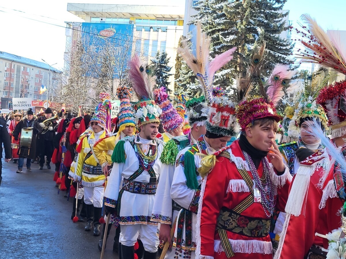 Mii de suceveni și turiști au asistat, sâmbătă, la cea mai mare paradă a obiceiurilor de iarnă din România, în cadrul Festivalului Internațional al Obiceiurilor de Iarnă. Evenimentul a reunit sute de urători din toate vetrele folclorice ale județului Suceava, precum și grupuri din Republica Moldova și Ucraina.