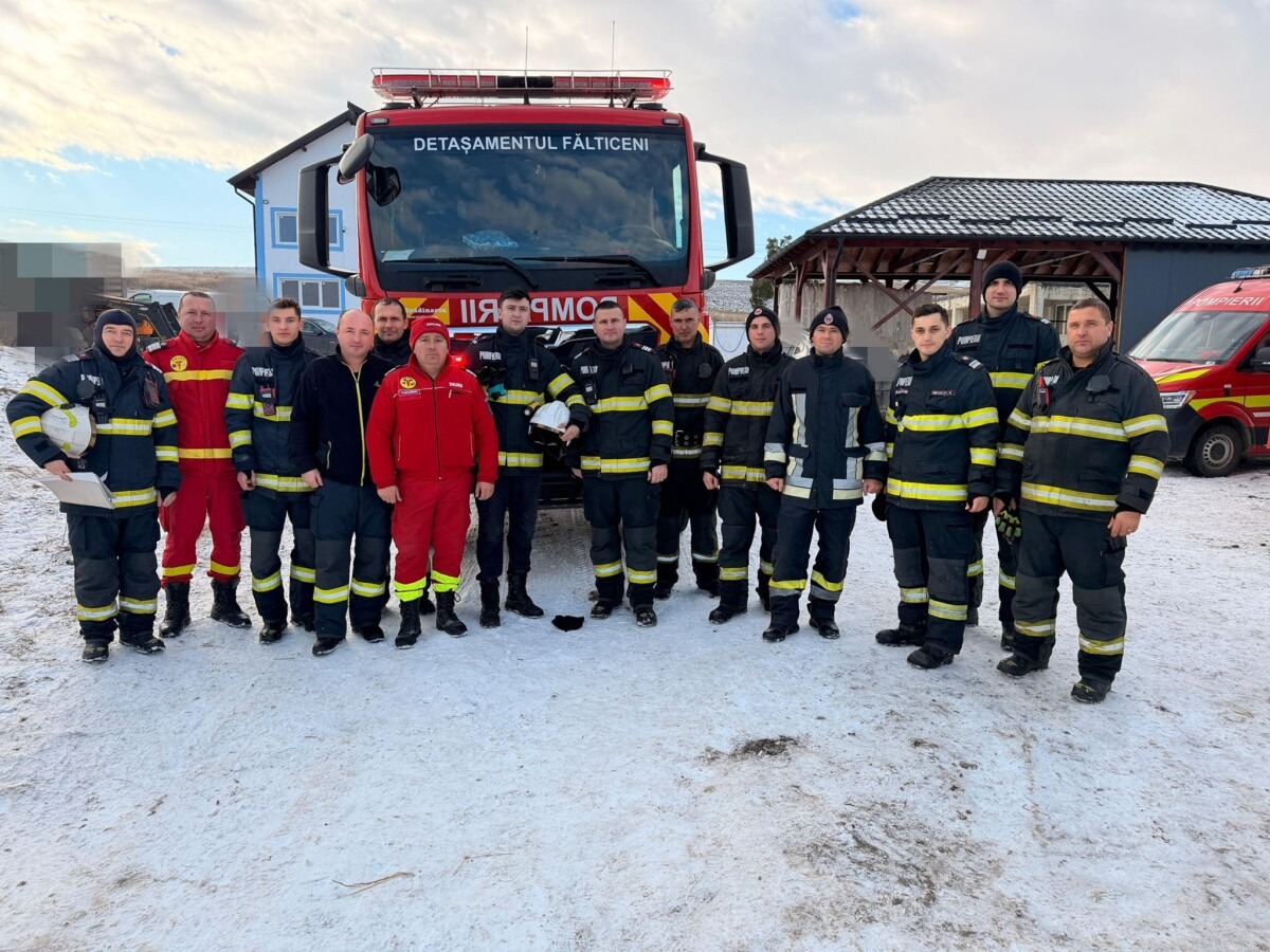 Inspectoratul pentru Situații de Urgență Județean Suceava a publicat o fotografie cu o parte dintre pompierii și voluntarii care au participat la acțiune, însoțită de următorul mesaj: