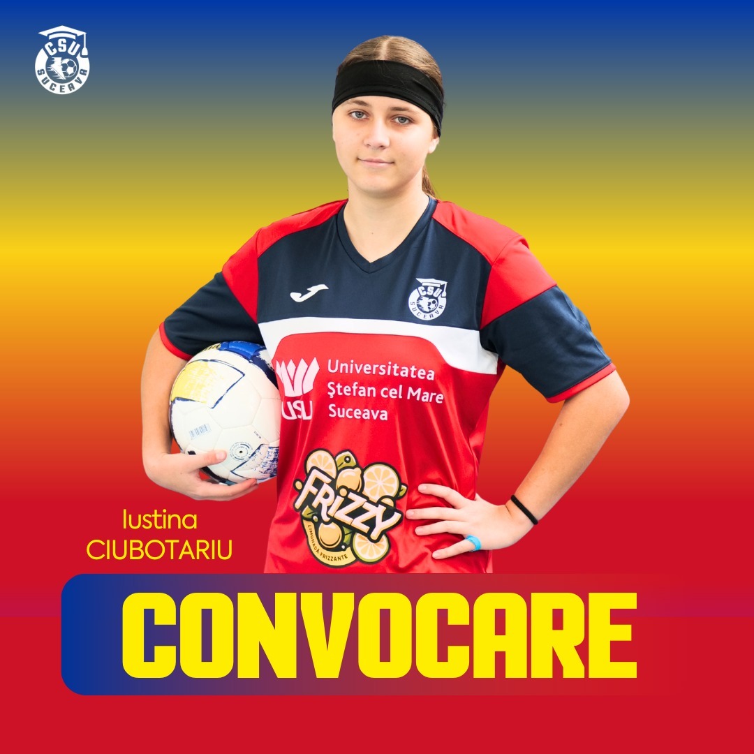 Jucătoarea secției de fotbal feminin a CSU Suceava, Iustina Ciubotariu, a fost convocată de Federația Română de Fotbal la echipa națională Under 15 pentru o tabără de pregătire și evaluare tehnică individuală.
