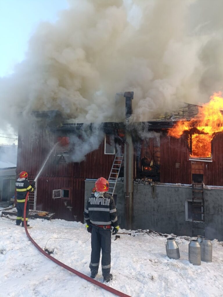 Un incendiu puternic a izbucnit duminică, 18 ianuarie 2026, în jurul orei 17:00, la o casă de locuit din localitatea Șaru Dornei.
