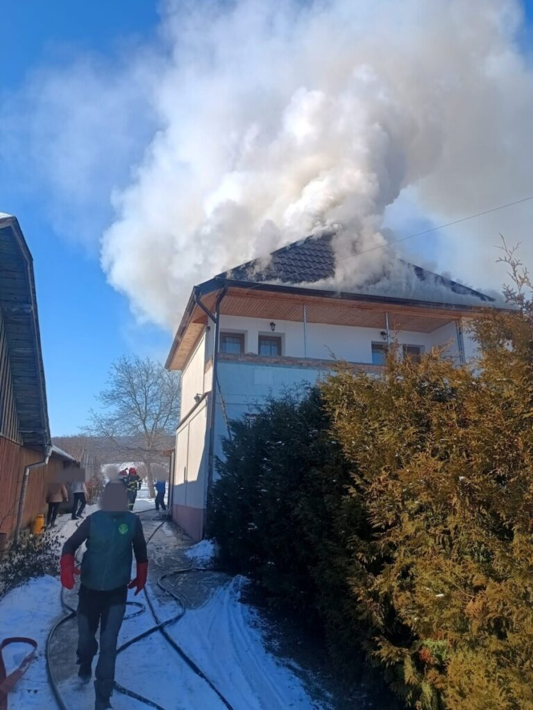 Un incendiu puternic a fost lichidat luni, 19 ianuarie 2026, după o intervenție susținută a pompierilor, la o casă de locuit din satul Lipoveni, comuna Mitocu Dragomirnei.