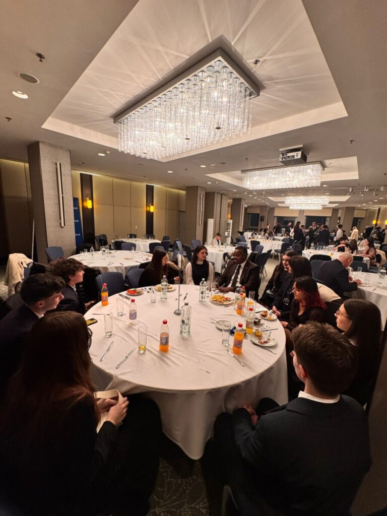 Un moment de seamă al conferinței a fost cina diplomatică, unde elevii au avut ocazia să interacționeze direct cu personalități marcante din mediul diplomatic: Excelența Sa Doamna Ulla Krauss-Nussbaumer (Ambasador al Austriei), Ambasadorul Norvegiei, Ambasadorul Indiei, reprezentanți ai Ambasadei Republicii Populare Chineze, reprezentanta Ambasadei Italiei și directorul British Council România și Bulgaria.