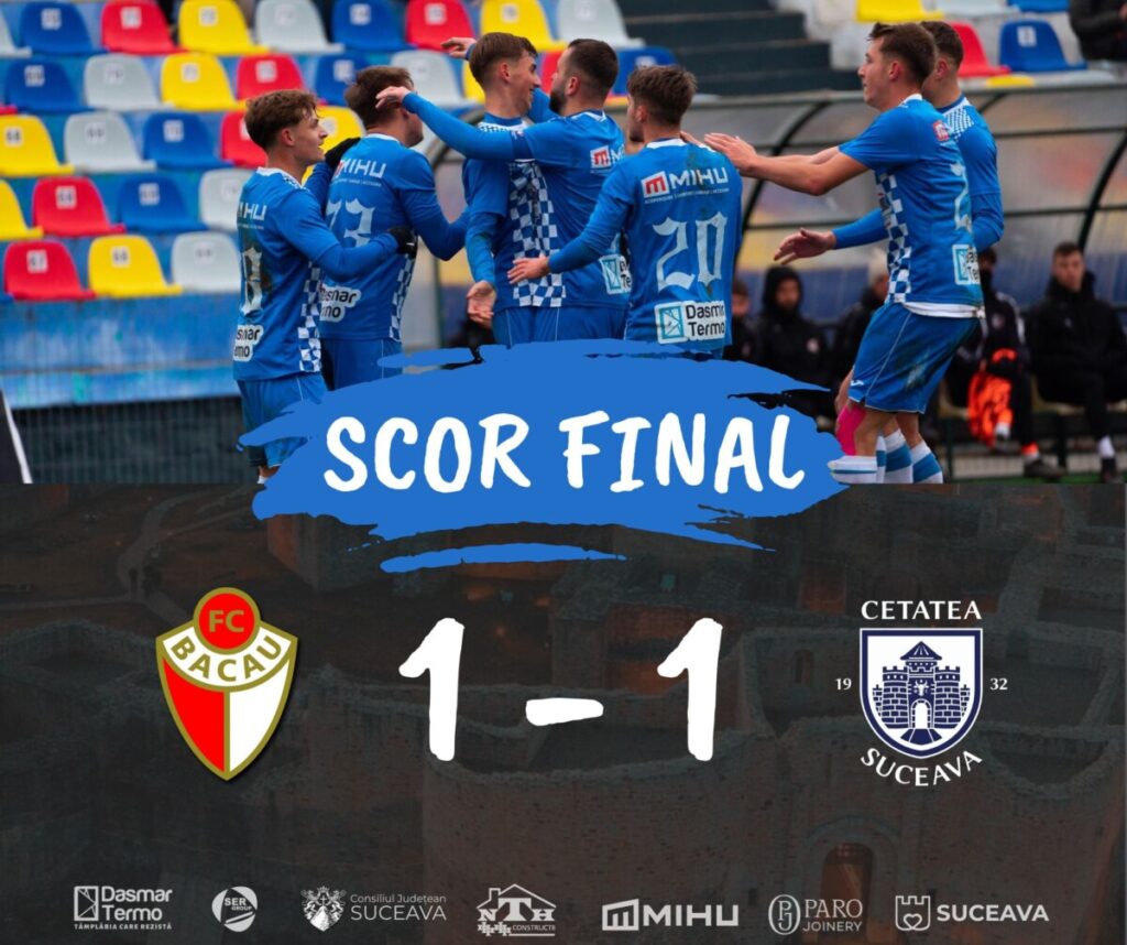 Cetatea 1932 Suceava a încheiat seria de jocuri de verificare din această iarnă cu un nou rezultat de egalitate, scor 1-1, în meciul amical disputat în deplasare, împotriva formației FC Bacău 2.