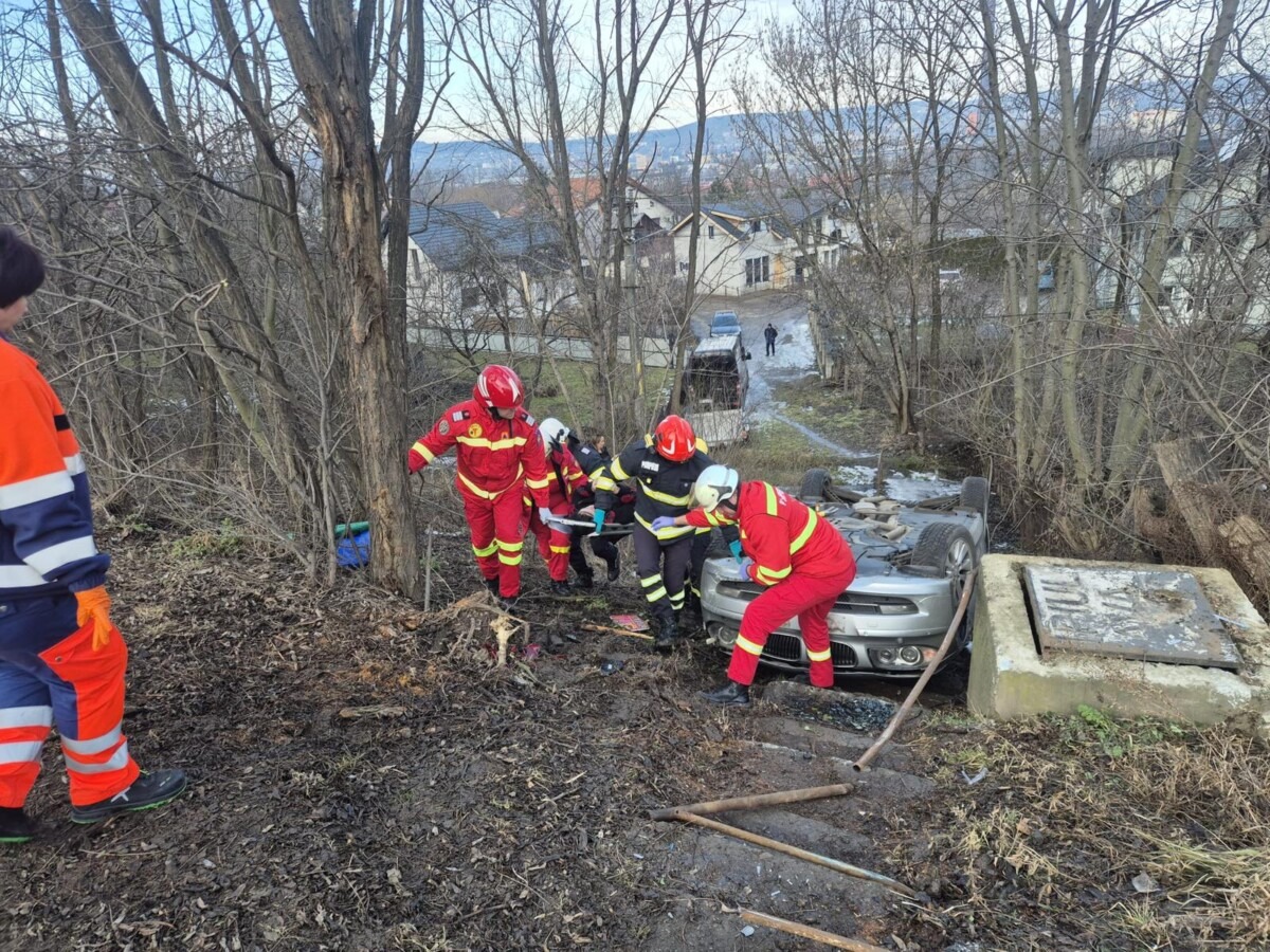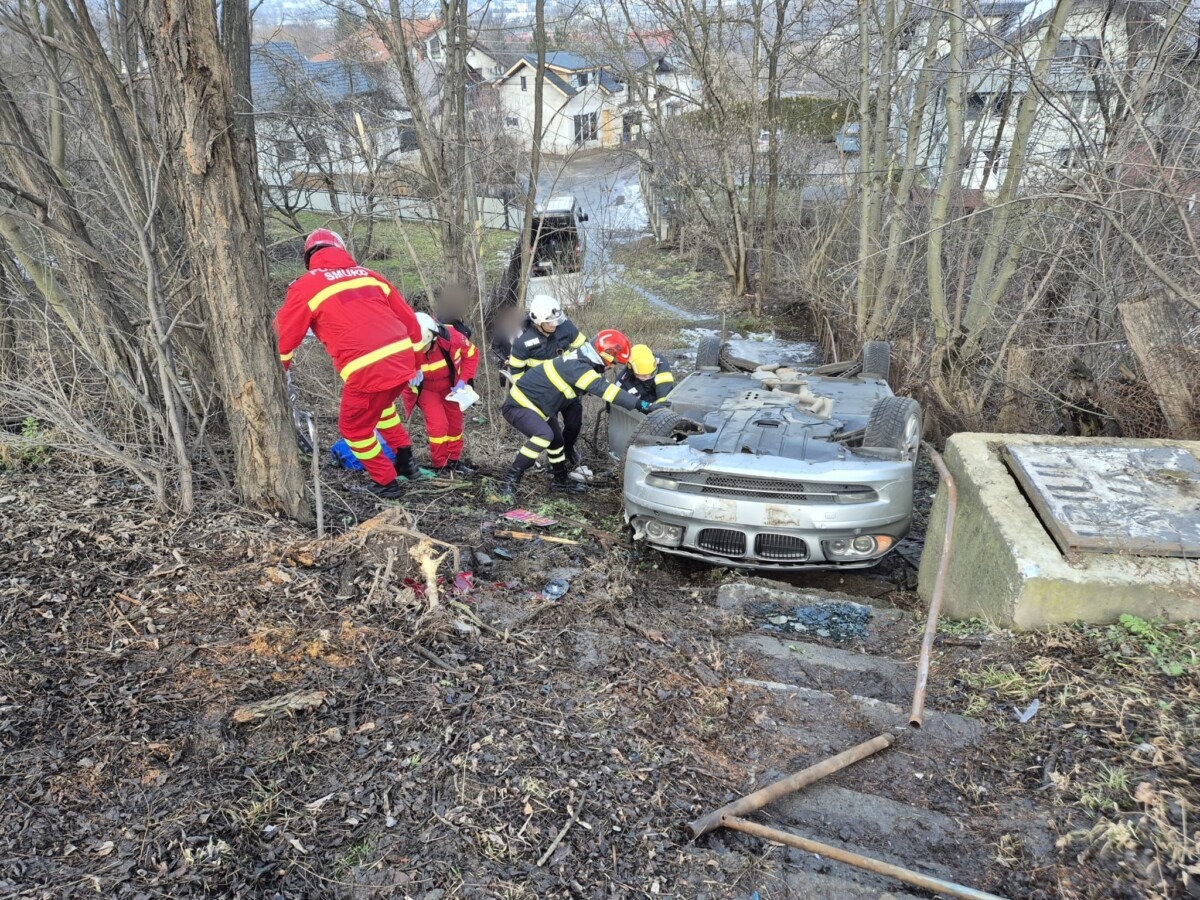 Conform informațiilor preliminare, conducătoarea autoturismului a rămas conștientă și cooperantă, dar a fost blocată în interiorul vehiculului răsturnat.