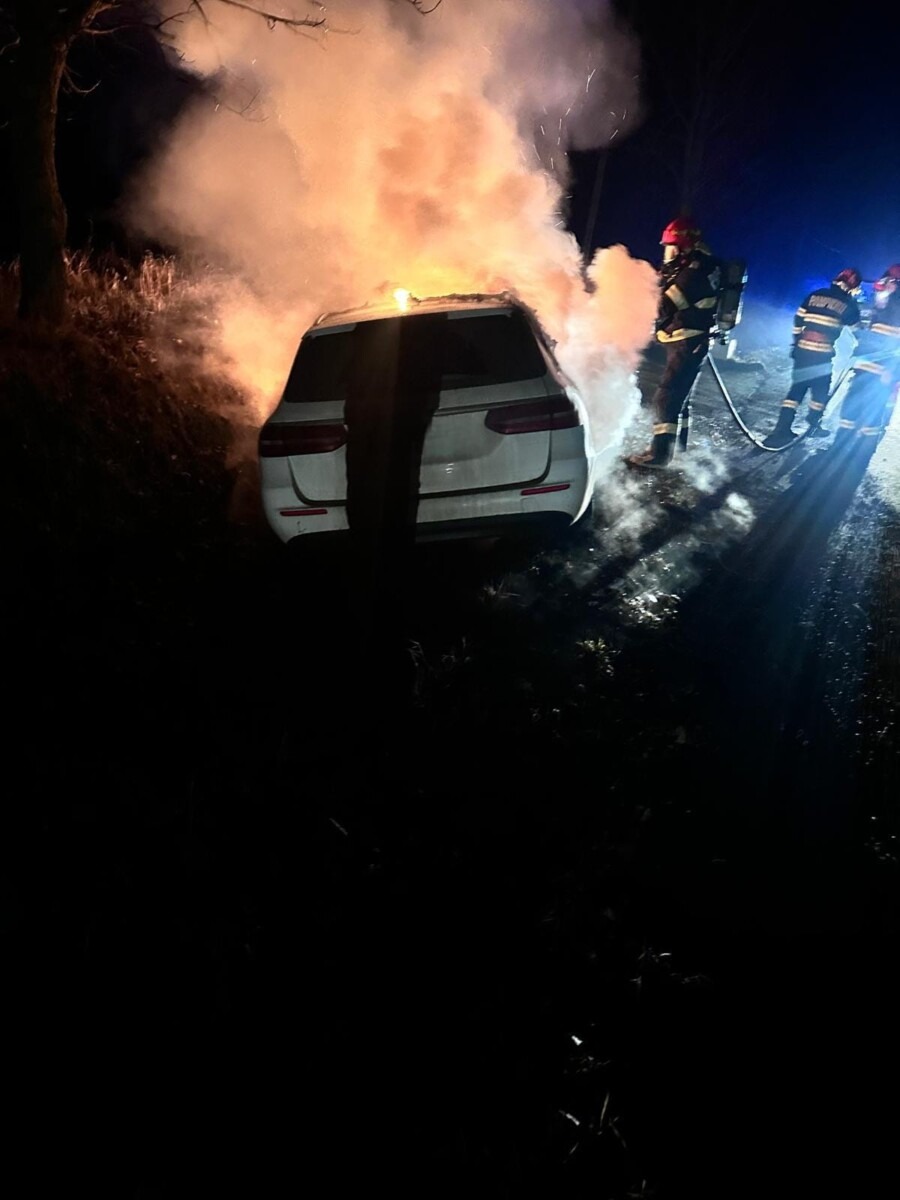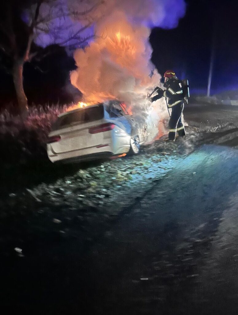 Din fericire, conducătorul auto a reușit să iasă singur din vehicul și nu a suferit răni.