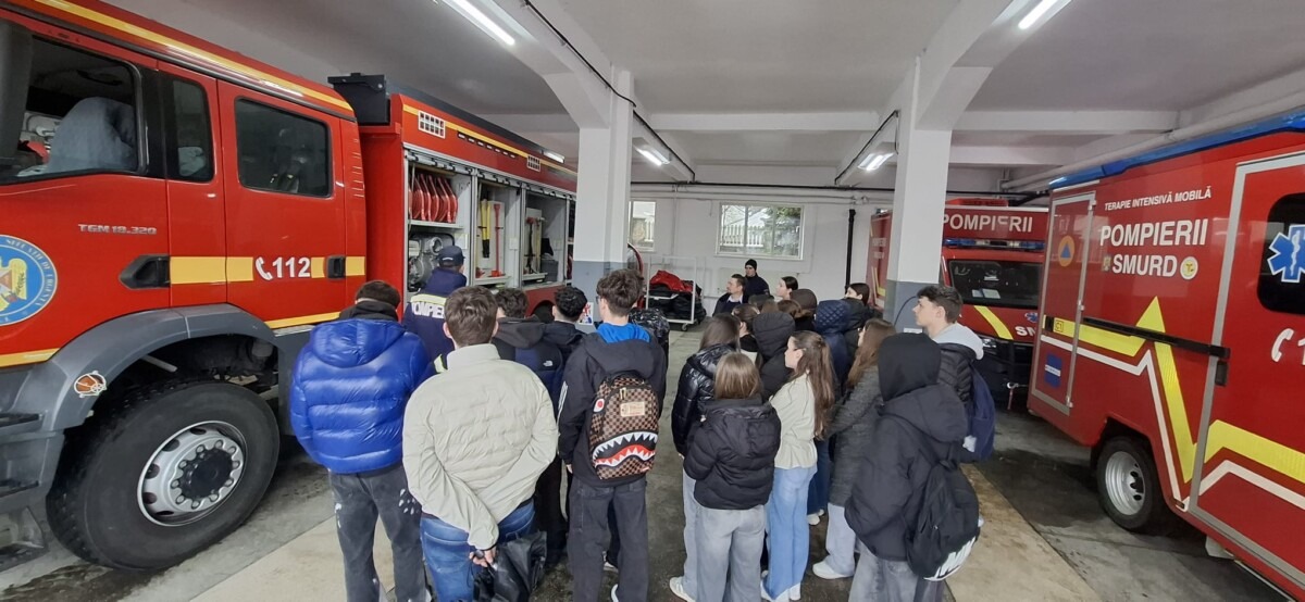 Tot la sediul inspectoratului au ajuns elevii de la Colegiul Național „Ștefan cel Mare” Suceava, care au fost impresionați de dotările tehnice ale pompierilor, de modul de echipare complet (inclusiv aparate de respirat) și de demonstrațiile practice cu autoscara pentru intervenții la înălțime.