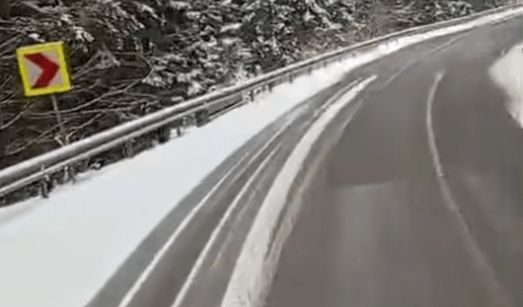 Imagini de pe DN 18, în zona de la limita cu județul Maramureș spre Cârlibaba, arată că stratul de zăpadă s-a așternut din nou pe șosea. Echipele Secției Drumuri Naționale Câmpulung Moldovenesc intervin de urgență cu lamă și material antiderapant pentru a menține traseul practicabil și a asigura circulația în condiții de siguranță.