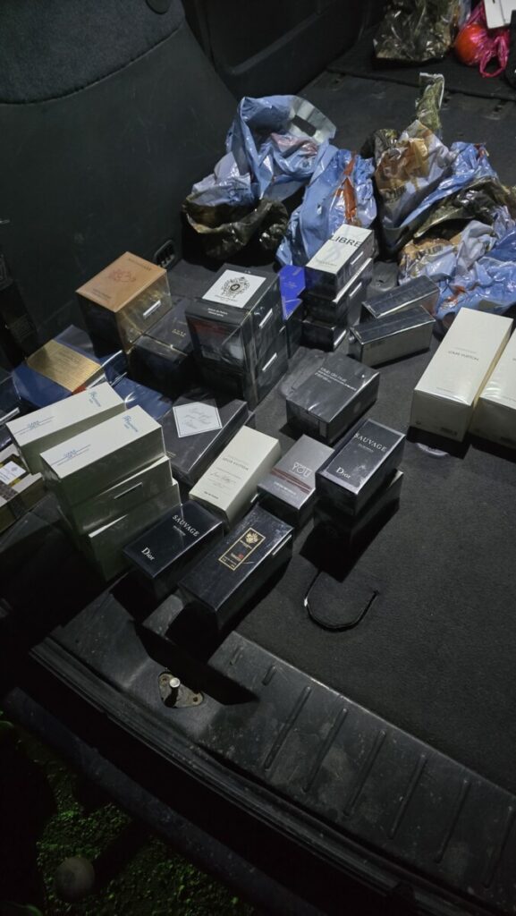 Potrivit Poliției Județene Suceava, pe raza municipiului Suceava a fost interceptat un autoturism marca Volkswagen Sharan condus de un cetățean ucrainean. În urma controlului amănunțit au fost ridicate 285 de flacoane de parfumuri de mărci înregistrate (Louis Vuitton, Dior, Chanel etc.) și aproximativ 500 de articole de îmbrăcăminte, încălțăminte și accesorii (Dolce & Gabbana, Tom Ford, Gucci, Prada etc.). Valoarea estimată a bunurilor este de 557.550 lei. Autoturismul a fost indisponibilizat.
