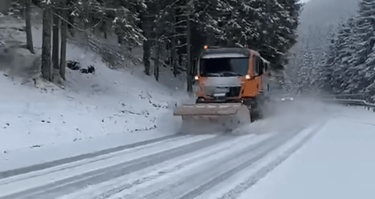 Carosabilul este umed pe fondul ninsorilor, iar vizibilitatea poate fi redusă în zonele superioare.