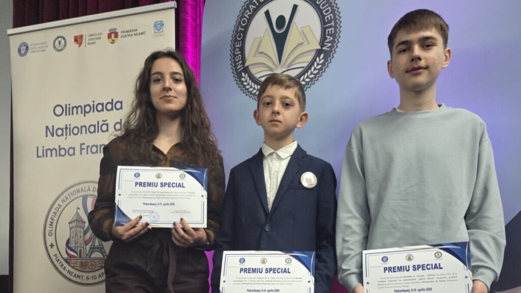 Lotul județului Suceava a obținut trei premii speciale la etapa națională a Olimpiadei de Limba Franceză, care s-a desfășurat în perioada 6-10 aprilie 2026 la Piatra Neamț. Performanța vine să confirme încă o dată calitatea învățământului de limbi moderne din județ.