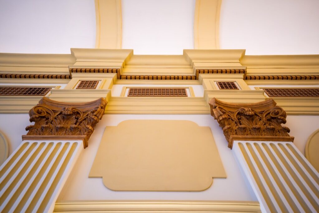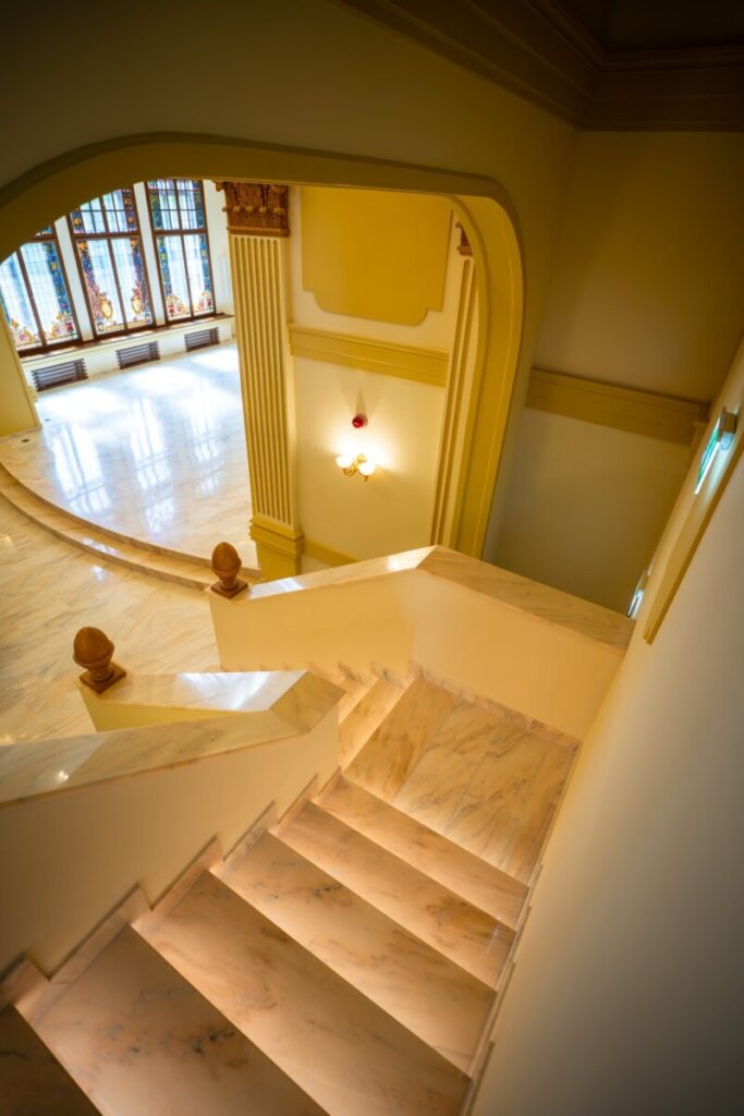Refacerea Sălii „Ștefan cel Mare” din cadrul Palatului Administrativ Suceava a pornit de la arhitectura inițială a sălii, anterioară intervențiilor de modificare radicală executate în perioada construcției corpurilor B și C (anul 1968).
