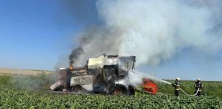 Incendiu la o combină agricolă într-un lan de grâu la Bălcăuți....