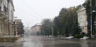 Lucrările de amenajare a zonei pietonale din fața Palatului Administrativ din...