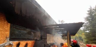 O cabană în construcție din Sadău a ars într-un incendiu. Pompierii...