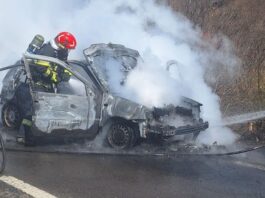 Autoturism mistuit complet de flăcări în Sadova – cauză probabilă o defecțiune electrică