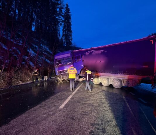 Trafic oprit complet pe DN 17 între Mestecăniș și Iacobeni după ce un TIR a blocat transversal drumul