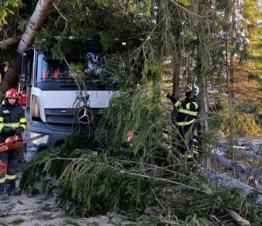 Arbore căzut peste o autoutilitară în localitatea Panaci – intervenție promptă a pompierilor din Vatra Dornei