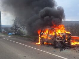 Accident rutier urmat de incendiu în comuna Vulturești: un autoturism a ars complet
