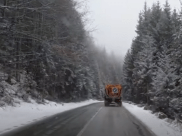 Ninsorile au revenit în zona montană a județului Suceava. Pe DN 17A – Pasul Palma drumarii intervin cu utialaje cu lamă și material antiderapant