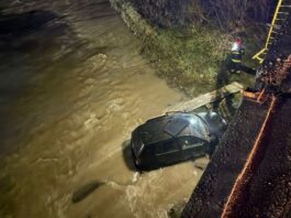 A plonjat cu maşina într-un pârâu din Şaru Dornei