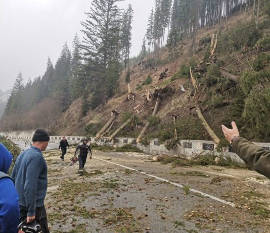 Pompierii militari au deblocat D17 de arborii căzuți pe carosabil în zona Iacobeni