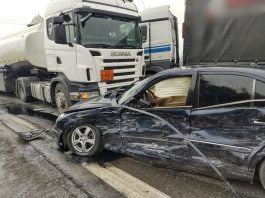 FOTO//O femeie a fost rănită după o coliziune între două TIR-uri și un autoturism la Spătărești