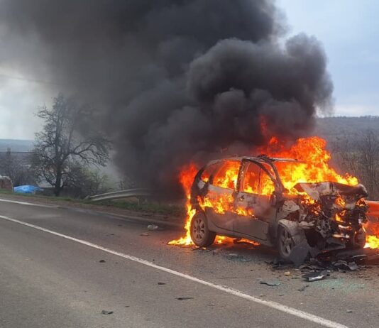 Accident rutier urmat de incendiu în comuna Vulturești: un autoturism a ars complet