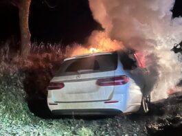 Accident urmat de incendiu la Zamostea: Un autoturism a luat foc după ce a lovit un cap de pod