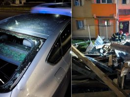VIDEO-FOTO//Trei mașini avariate de căderea unui acoperiș de bloc la Gura Humorului
