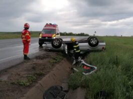 FOTO // Mașină răsturnată pe raza localității Stroiești. Șoferul primește îngrijiri medicale