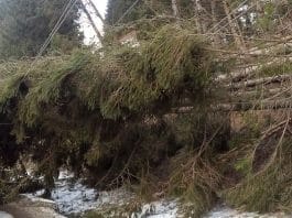Trafic blocat pe DN 17B în Crucea, județul Suceava, din cauza unui arbore căzut și a unui stâlp de electricitate avariat